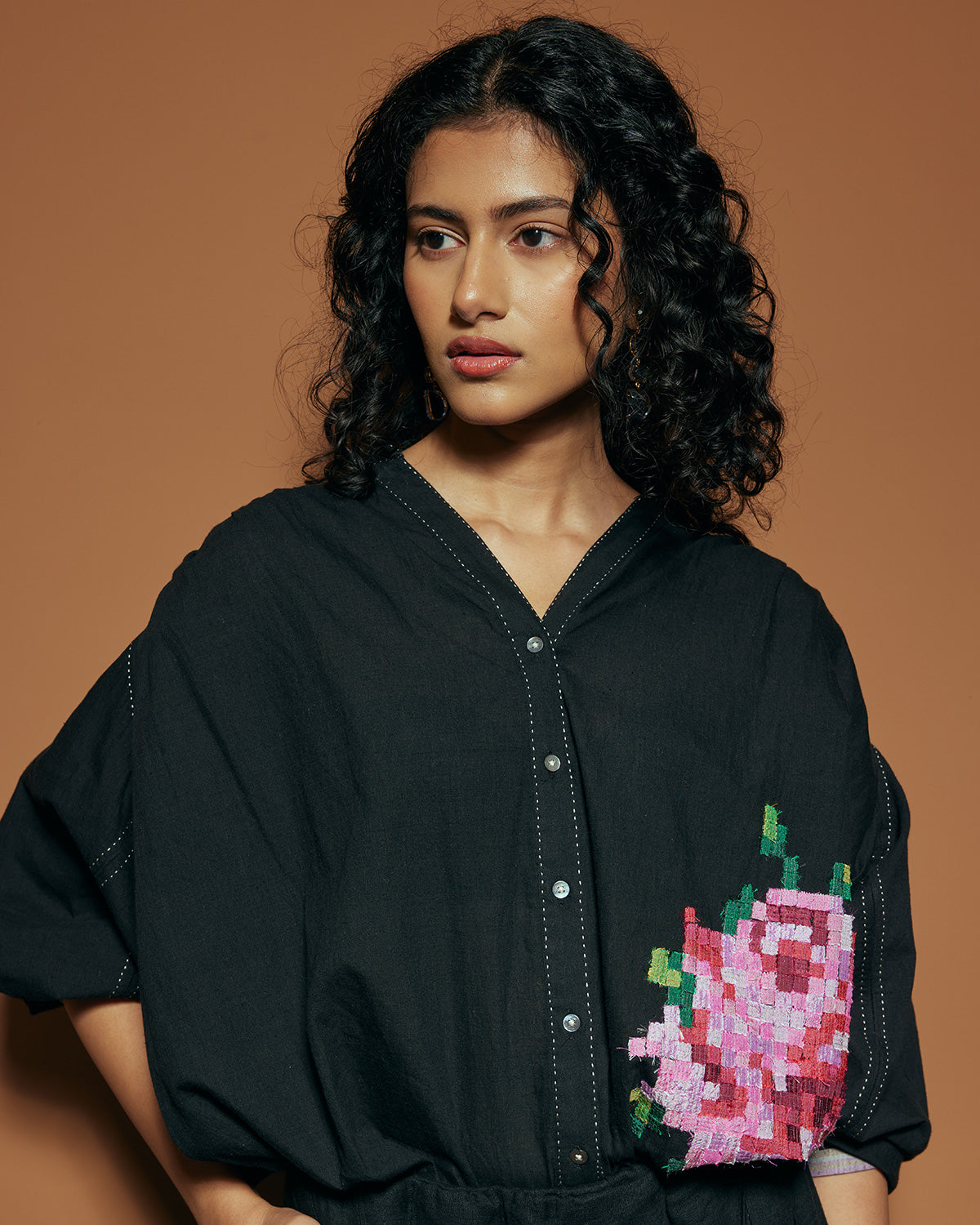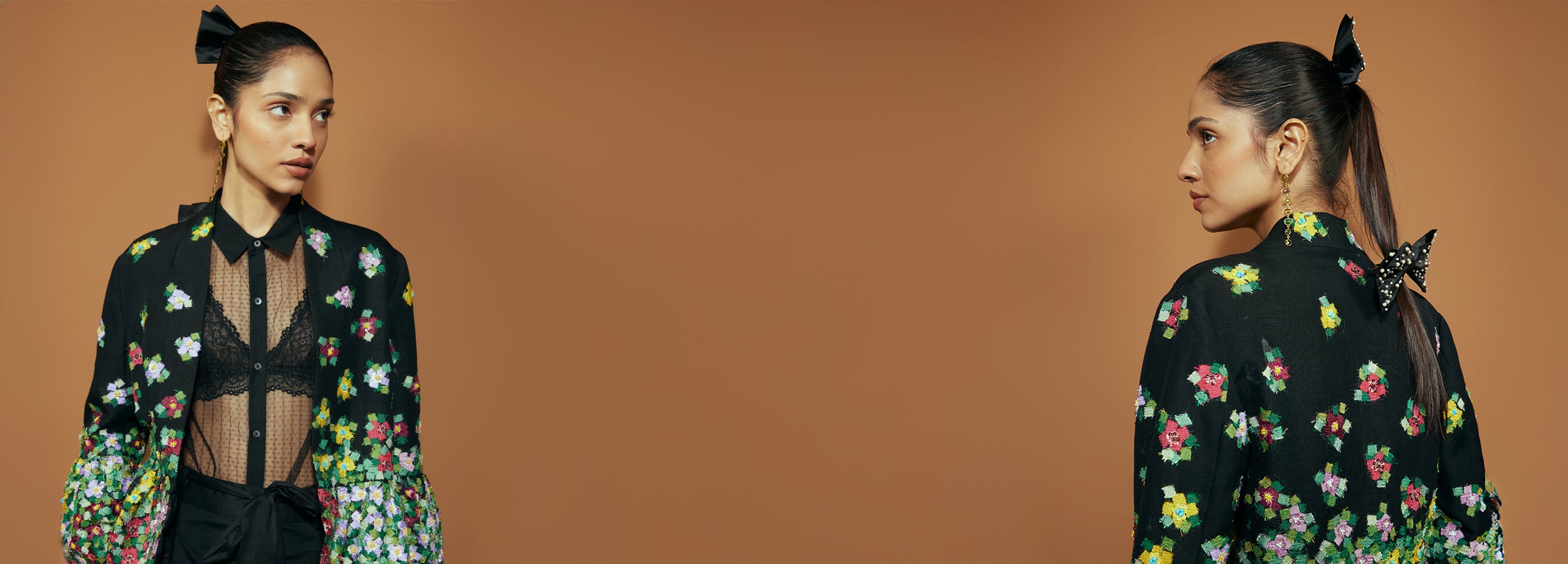 Every piece is defined by intricate detailing — from delicate cross-stitch embroidery to artful appliqué and textured patchwork. These signatures aren’t embellishments; they’re quiet declarations of the label’s craft-first philosophy. Handwork isn't added on — it's woven in.